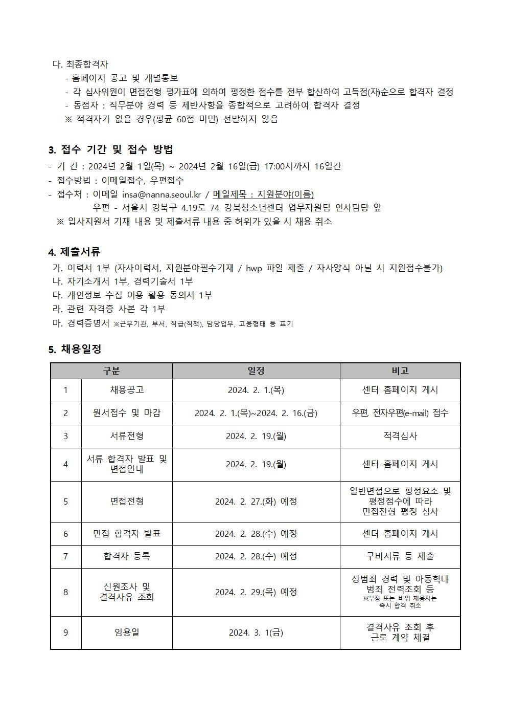강북청소년센터 직원(인공암벽보조요원,방과후아카데미SM,청소년사업,시설관리) 1차 합격자 공고