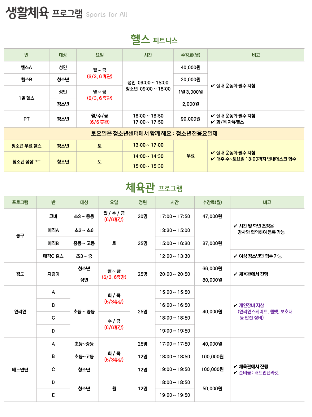 2025년 6월 생활체육 및 평생교육 프로그램 운영을 안내드립니다.