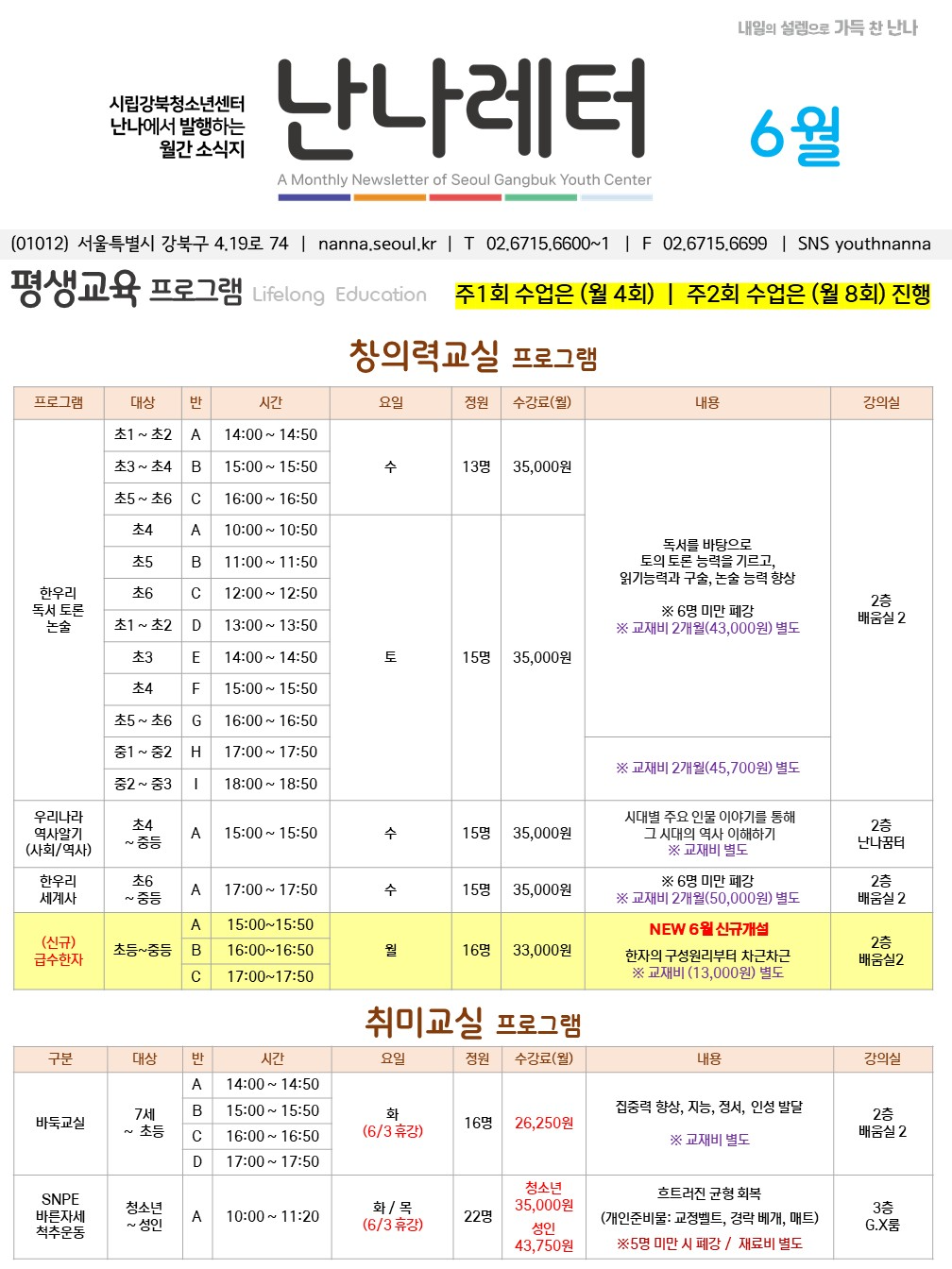 ※ 세부 프로그램 내용은 전화문의(02-6715-6600) 및 아래 난나레터를 확인 바랍니다.