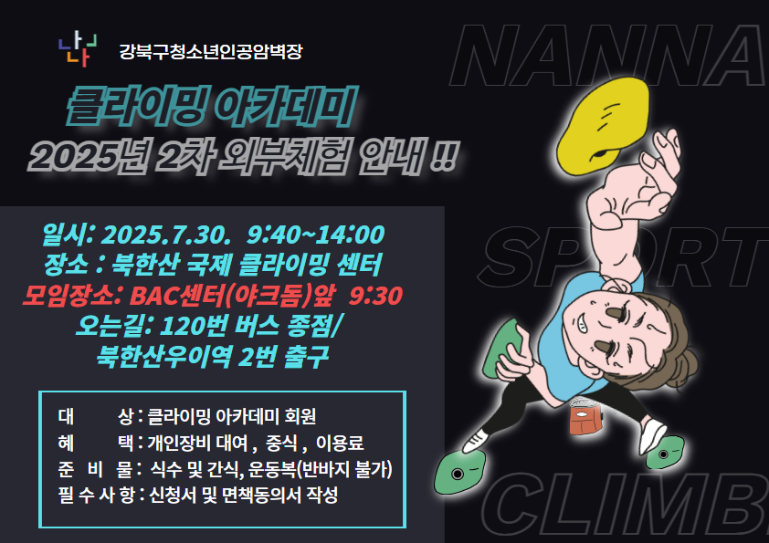 2025년 클라이밍아카데미 2차 외부체험 안내