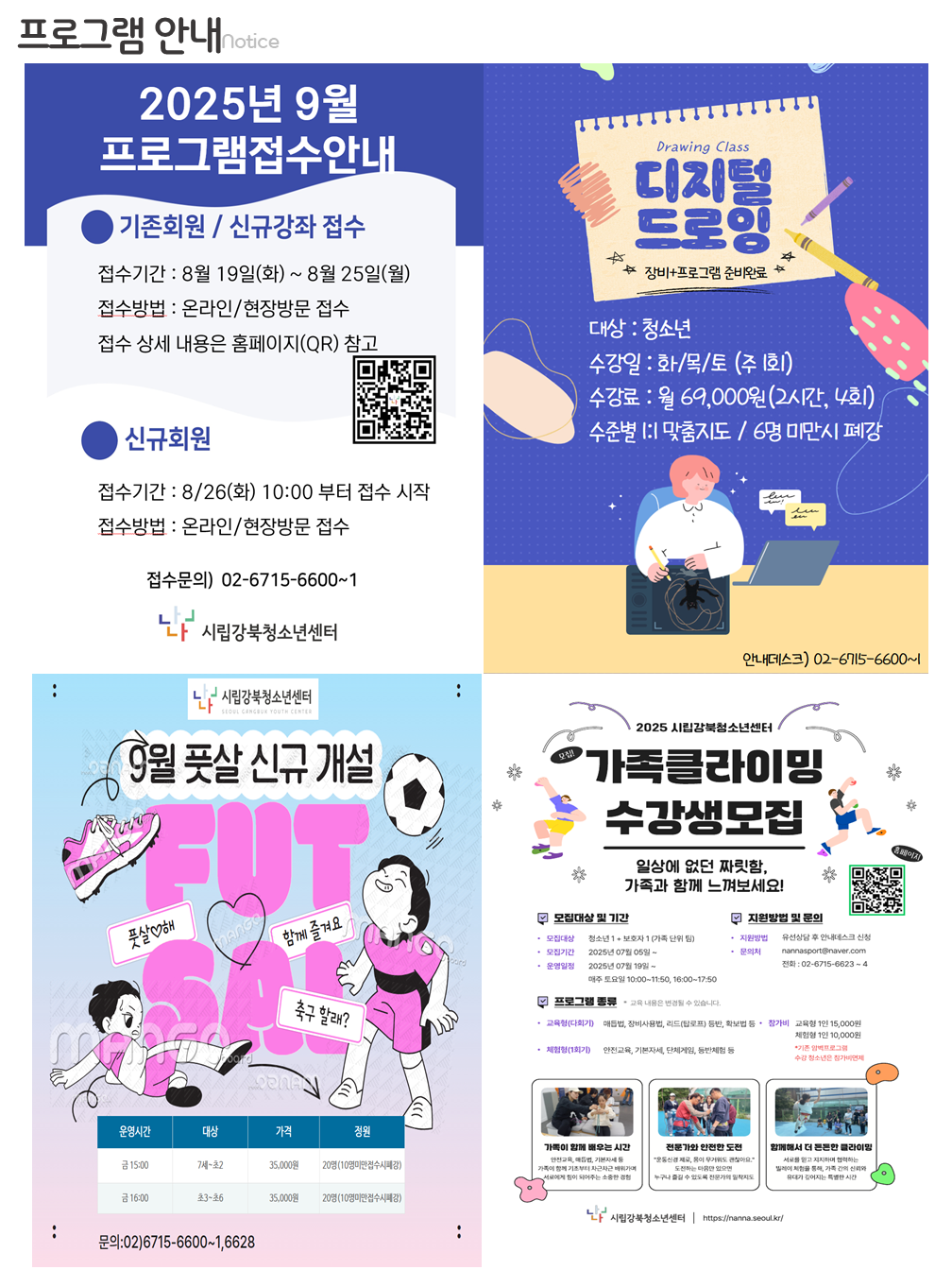 2025년 9월 생활체육 및 평생교육 프로그램 운영을 안내드립니다.